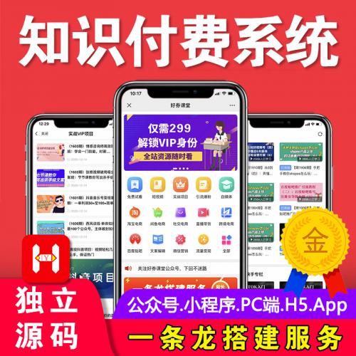 包含PC端+WAP手机端+微信公众号H5课堂+小程序+APP,适配三端学习场景的专属知识付费课堂。